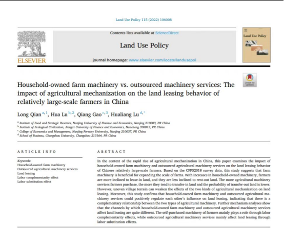 根据科睿唯安(Clarivate Analytics)公布的最新数据,2022年11月公司有2篇入选高被引论文。令人欣喜的是,这2篇论文同时入选ESI学科热点论文。这2篇高质量成果分别由公司钱龙老师以第一作者发表于《Land Use Policy》期刊(中科院一区),以及公司毕业生虞松波博士第一作者发表于《Frontiers in Psychology》(中科院三区)期刊。