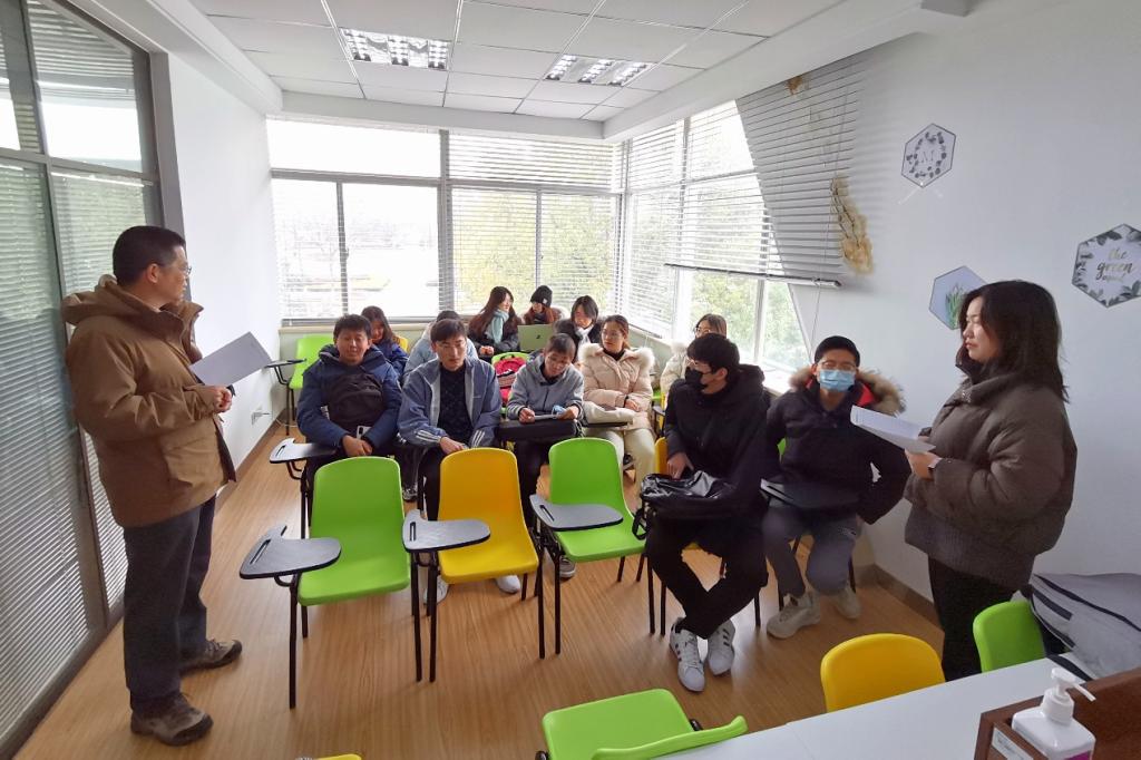 座谈会上,12位同学围绕个人学习生活背景、入学以来的感受、存在的困惑等方面进行介绍和交流。 对于新生提出的关于课程安排、专业学习、设施条件、宿舍生活等其他方面的问题及建议,张圣兵书记均一一给予了回应和解答。张书记指出,研一学年已经过半,希望各位同学珍惜研究生阶段的学习机会,提前做好三年规划,鼓励硕士生考博进一步提升自我,与此同时,也要兼顾到日常班集体活动,以主人翁的身份积极参与和协助各项集体活动与事务。