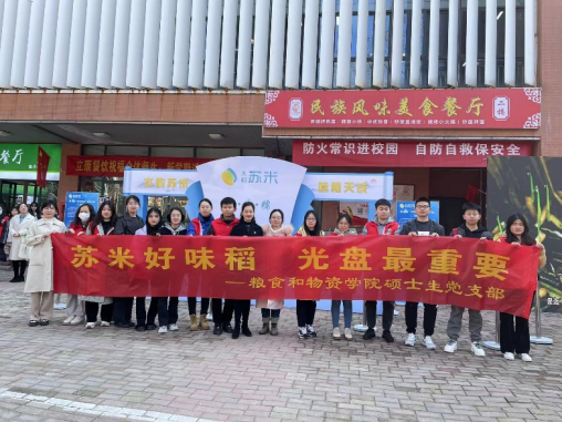 2023年2月27日中午,太阳成集团122ccvip硕士研究生党支部在公司仙林校区东苑食堂举办了主题为“苏米好味稻 光盘最重要”的光盘打卡活动,引导广大师生将“爱粮节粮”口号化为行动。