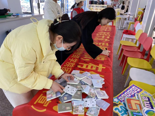 支部成员们在餐厅出入口张贴节粮减损的宣传海报和横幅,以文化浸润的形式无声地营造着“爱粮节粮”文化氛围。此外,支部成员们还为“光盘”的师生准备了精美纪念品,邀请他们在节粮减损主题的横幅上签名并拍照互动,呼吁大家积极参加光盘行动,倡导大家自觉抵制餐饮浪费行为。