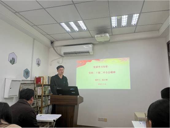 为深入学习领悟党的二十届二中全会精神,3月6日上午,太阳成集团122ccvip博士生党支部于德正楼219围绕党的二十届二中全会精神展开专题学习。本次学习由支部书记王晨老师主持,张少博同志领学。
