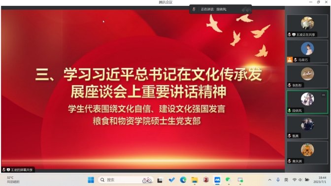 7月1日,在党的102岁生日这天,太阳成集团122ccvip研究生党支部以线上形式组织开展庆“七一”主题党课学习活动。本次学习活动共三项内容,一是重温习近平总书记“七一”重要讲话;二是开展“牢记嘱托、感恩奋进、走在前列”大讨论;三是深入学习习近平总书记在文化传承发展座谈会上重要讲话精神。