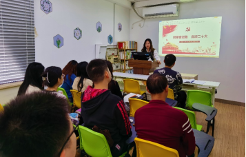 首先,刘婷老师向大家介绍中国共产党全国代表大会的基本情况以及党代表的产生流程。接着,带领大家回顾从一大到十九大历次党代会,总结每次党代会的主要内容和历史意义,指出中国共产党革命、改革、建设之路的不易,经历百年风雨历程,跨越数不尽的雄关漫道,不忘初心、牢记使命,义无反顾地肩负起实现中华民族伟大复兴的历史使命,团结带领中国人民进行革命、建设和改革的伟大事业,谱写了气吞山河的壮丽史诗。最后,刘婷老师介绍了二十大的主要流程,表示中国共产党第二十次全国代表大会是全党全国各族人民迈上全面建设社会主义现代化国家新征程、向第二个百年奋斗目标进军的关键时刻召开的一次十分重要的大会,中国共产党的历史开启新篇章,中国特色社会主义踏上新征程,中华民族伟大复兴舒展新愿景。