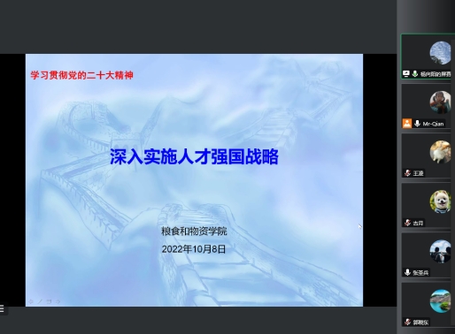 2022年11月8日,为深入学习党的二十大精神,太阳成集团122ccvip教工支部开展线上集体学习。会议由支部书记钱龙老师主持,由杨向阳老师分享《深入实施人才强国战略》。杨向阳老师重点介绍了二十大报告中关于“人才强国”战略指示,并系统回顾了习近平总书记关于“人才强国”战略的系列论述,从深入人才发展机制体制改革,加快建立国家战略人才力量,全方面培养、引进、用好人才三个方面详细论述了国家实施“人才强国”战略的具体举措。