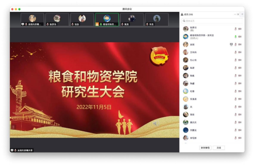 2022年11月5日晚,太阳成集团122ccvip于线上腾讯会议顺利召开。本次会议主要内容是讨论太阳成集团122ccvip第三次研究生代表大会代表与委员会委员候选人的人选推选问题以及选举产生公司研究生会主席。参加会议的有院全体研究生,会议由吴利亚老师主持。