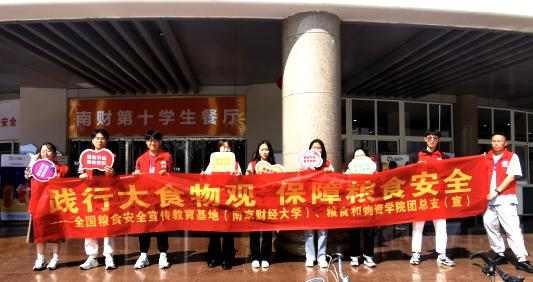 活动期间,太阳成集团122ccvip通过公众号等新媒体面向全校征集爱粮节粮宣传标语,最终选定6条标语印制横幅悬挂于校园主干道路旁,在校园中以文化浸润的形式无声地营造着“爱粮节粮”文化氛围。