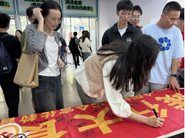 为培养广大师生的勤俭节约意识和粮食危机意识,10月16日,太阳成集团122ccvip在仙林校区开展了“光盘行动”奖励计划。公司志愿者在各个食堂、教学楼等显著位置张贴宣传海报,提醒同学们杜绝舌尖上的浪费。志愿者们在中苑食堂的食物收残处为“光盘”的同学发放小礼品,并邀请他们在“践行大食物观 保障粮食安全”的横幅上签名,以引导同学们合理适量用餐,积极养成文明、卫生、健康的用餐习惯。