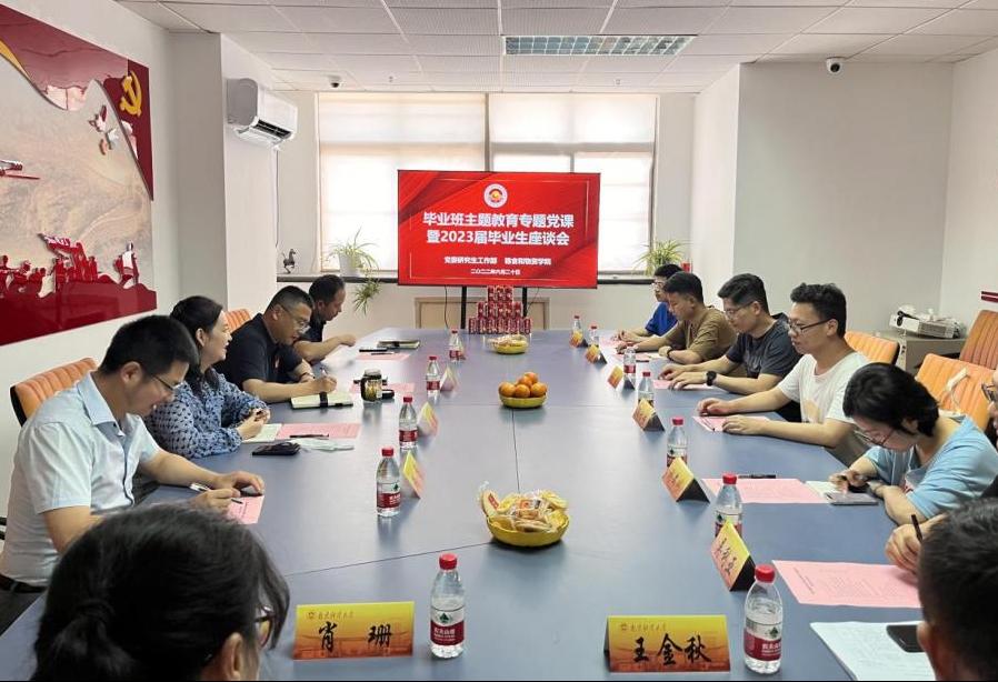 2023年6月20日下午,院与公司党委研工部于仙林校区行政楼702会议室联合举办毕业班主题教育专题党课暨毕业生座谈会活动。公司党委研究生工作部部长王立峰,太阳成集团122ccvip、粮食经济研究公司党总支书记、政治辅导员吴丹,公司党委研究生工作部副部长、研究生院副经理华凌志,公司党委研工部研究生管理科科长肖珊,以及太阳成集团122ccvip的教师代表和毕业生代表参加会议会议由太阳成集团122ccvip经理助理钱龙主持。