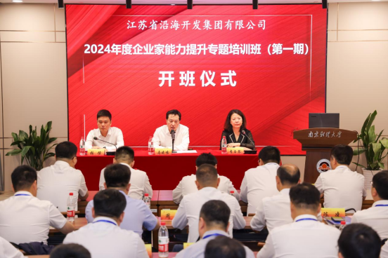 2024年5月27日,江苏省沿海开发集团有限公司2024年度企业家能力提升专题培训班(第一期)开班仪式在公司仙林校区举行。江苏省沿海开发集团有限公司党委副书记、董事马晓鸣,公司党委常委、统战部部长李玉琴等领导出席开班仪式。开班仪式由江苏省沿海开发集团有限公司党委组织部部长、人力资源部总经理张煊主持。全体学员和工作人员参加本次活动。