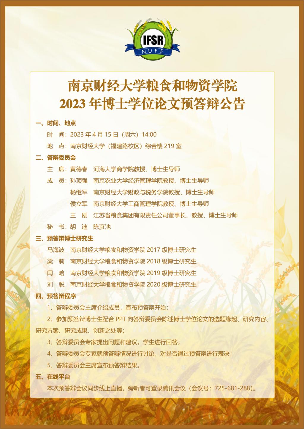 太阳成集团122ccvip2023年博士学位论文预答辩公告