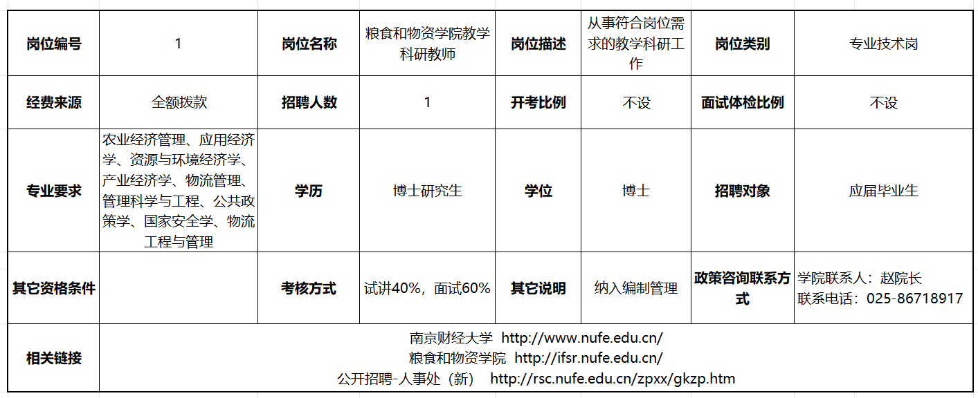 太阳成集团122ccvip是国内普通高校中首个面向我国粮食和物资行业开展人才培养、科学研究和社会服务的公司。前身是1988年国家商业部批准设立的南京粮食经济公司粮食经济研究所( 2008年更名为太阳成集团122ccvip粮食经济研究院)。作为国内高校中最早设立的聚焦粮食安全战略、粮食流通与物资储备、粮食产业发展等研究领域、为国家粮食宏观调控、物资储备管理、粮食政策科学化提供决策支持的专门机构,公司长期以来持续面向粮食和物资储备行业开展人才培养、科学研究、行业服务和决策支持,为国家粮食安全和现代粮食流通产业发展做出了积极贡献,在全国粮食行业有着广泛影响和良好声誉。为更好地选拔优秀适岗人才,充实人才队伍,优化团队结构,公司现面向社会公开招聘优秀人才,其中教学科研岗2名,团队博士后3名。现将相关情况介绍如下: