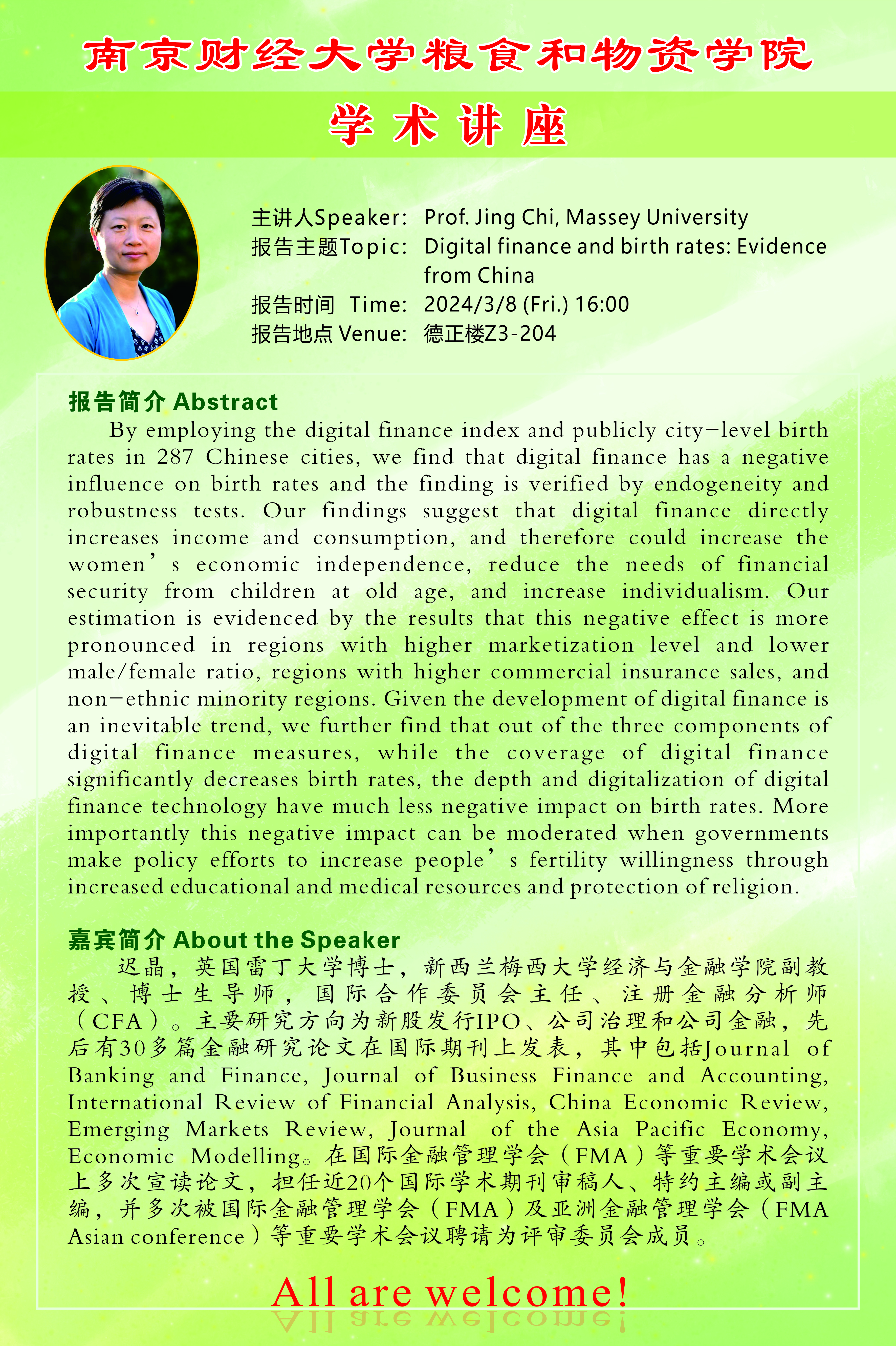 【讲座预告】Digital finance and birth rates: Evidence from China