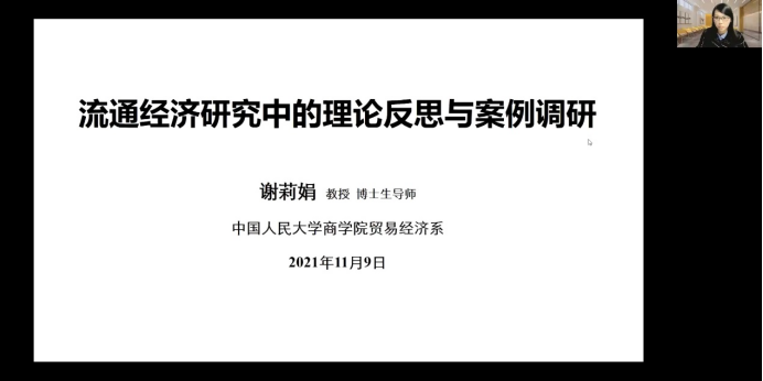 2021年11月9日晚上,中国人民大学商公司贸易经济系谢莉娟教授应邀为公司师生在线上开展了主题为“流通经济研究中的理论反思与案例调研”的学术讲座。公司硕士生、博士生和部分青年教师在线聆听了本次讲座。