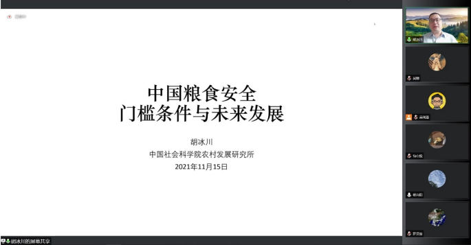 2021年11月15日上午,中国社会科公司农村发展研究所农产品贸易与政策研究室主任、中国国外农业经济研究会秘书长、中国农业经济学会副秘书长、博士生导师胡冰川研究员应邀为公司师生开展了主题为“中国粮食安全门槛条件与未来发展”的学术讲座。本次讲座采取线上方式开展,公司硕士生、博士生和部分青年教师积极参与聆听。