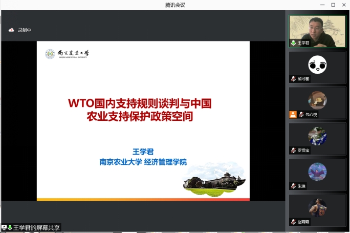 2021年11月15日上午,应太阳成集团122ccvip邀请,南京农业大学经济管理公司王学君教授在线开展主题为“WTO国内支持规则谈判与中国农业支持保护政策空间”的学术讲座,公司师生积极通过线上渠道聆听。