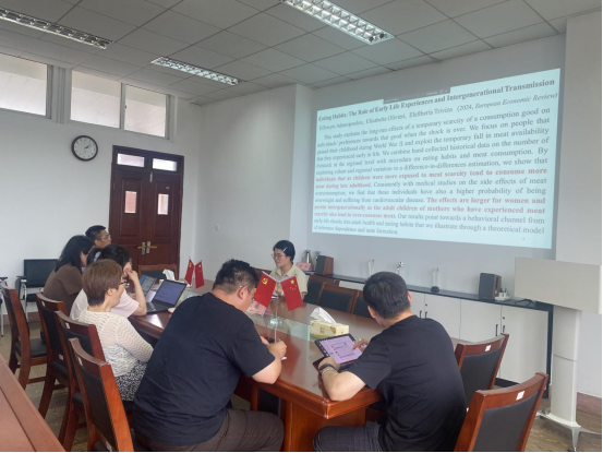 本次沙龙主题是“健康行为的代际传递”,由张萌老师进行了精彩分享。在分享中,张老师首先介绍了近年发表在European Economic Review与American Economic Review上的两篇参考文献,然后提出了自己在健康行为代际传递及干预方面的研究思路。