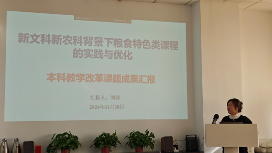 刘婷老师主要汇报了本科教改课题《新文科新农科背景下粮食特色课程体系的实践与优化》的研究成果,内容涵盖新文科和新农科的内涵及其指导意义、粮食特色类课程的建设思路、粮食特色类课程建设的优化建议等三个部分,其成果揭示了新文科新农科背景下教学改革的新要求,厘清各层次粮食特色类课程的特点与需求,并提出改革方向和举措,为促进粮食特色类课程体系提升提供有益参考。