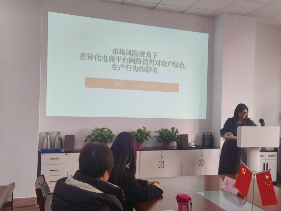2024年12月5日上午,公司2024年第10期“青年教师学术沙龙”在仙林校区艺术楼402会议室顺利开展。高杨老师分享了题为“市场风险视角下差异化电商平台网络销售对农户绿色生产行为的影响”的研究成果汇报。